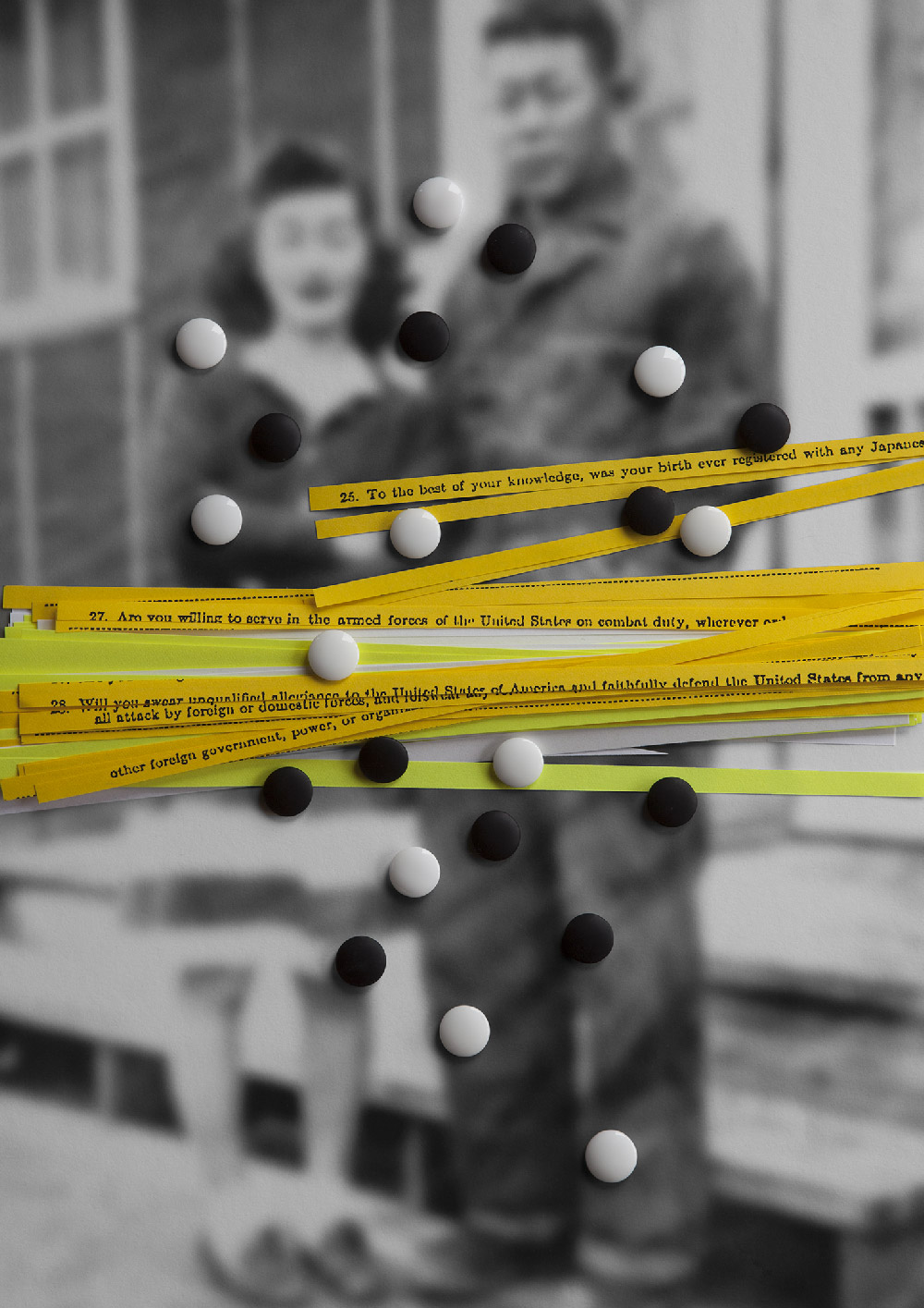 Dans sa série "Balancing Cultures", Takigawa s’engage dans un récit familial personnel, construisant et photographiant des collages assemblés à partir de la collection de photographies, de papier et reliques de leur emprisonnement. Jerry Takigawa nous guide d’abord vers la vérité avec des images éloquentes, puis nous invite à plonger plus profondément dans les indices et les juxtapositions qu’il nous a laissés dans les photographies.